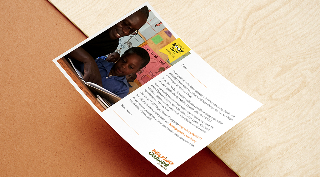Please consider giving a book to a friend, neighbour or colleague, with our HUGS World Book Day card inside, inviting them to donate to HUGS. Down Load HERE
